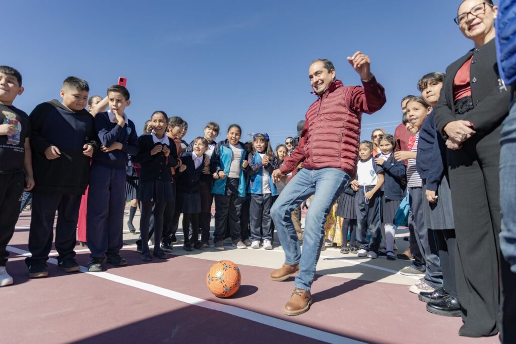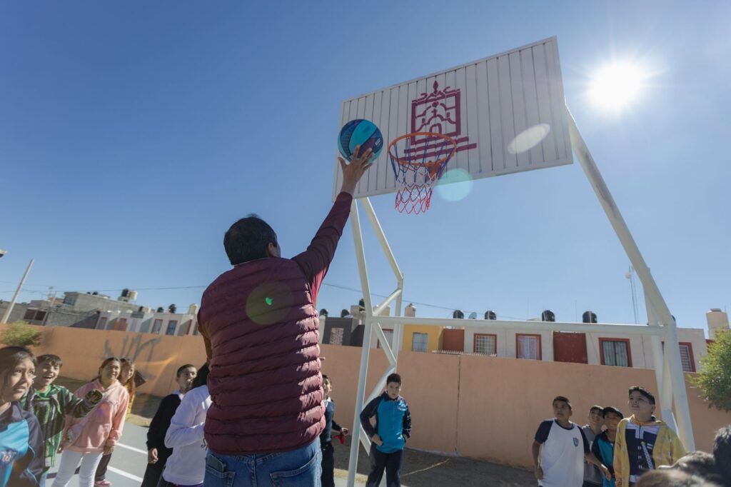 “Y hoy aquí gracias a los padres de familia, gracias a Gobierno del estado, gracias a la Secretaría de Educación, entregamos una bonita cancha de usos múltiples para uso y disfrute de toda esta comunidad infantil, es de ustedes, cuídenla y disfrútenla”, subrayó el edil guadalupense.